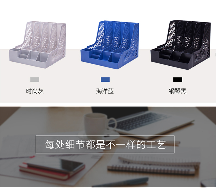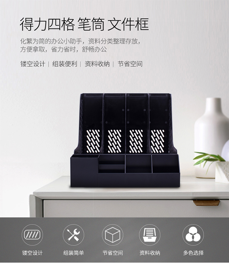 得力78981 文件筐多功能带笔筒四联桌面收纳文件框(黑、灰、蓝颜色随机)