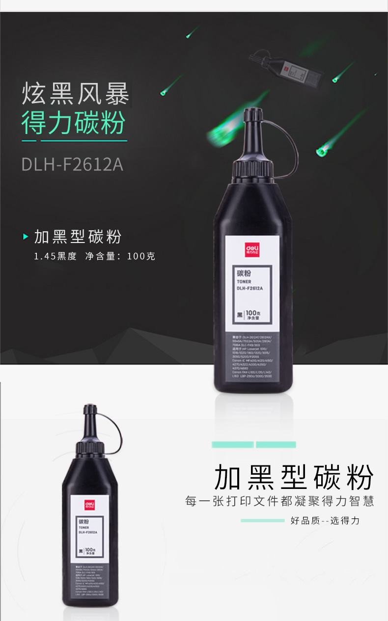 得力DLH-F2612A碳粉打印机硒鼓碳粉适用HP1010/1012/1015/1018 佳能LBP2900/3000)