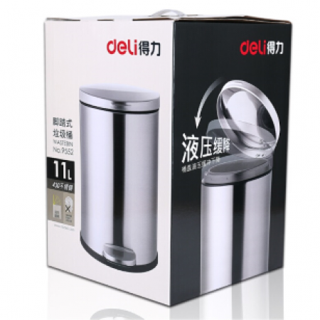 得力 9552脚踏式垃圾桶(银)-11L外壳材质不锈钢