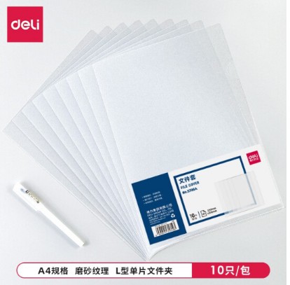 得力(deli)10只A4透明文件套 单页文件档案袋 L型文件夹资料袋 文件快递袋5706A
