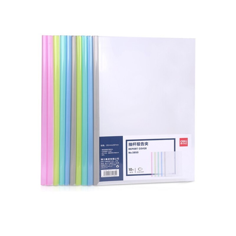 得力(deli)5850 A4水滴形拉杆夹抽杆文件夹 5mm彩色透明资料夹简历夹 5色装 30包(10只 包)