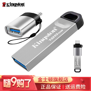 金士顿(Kingston)U盘 USB3.0 DTKN投标手机车载 金属优盘 128GB配type-c转接头