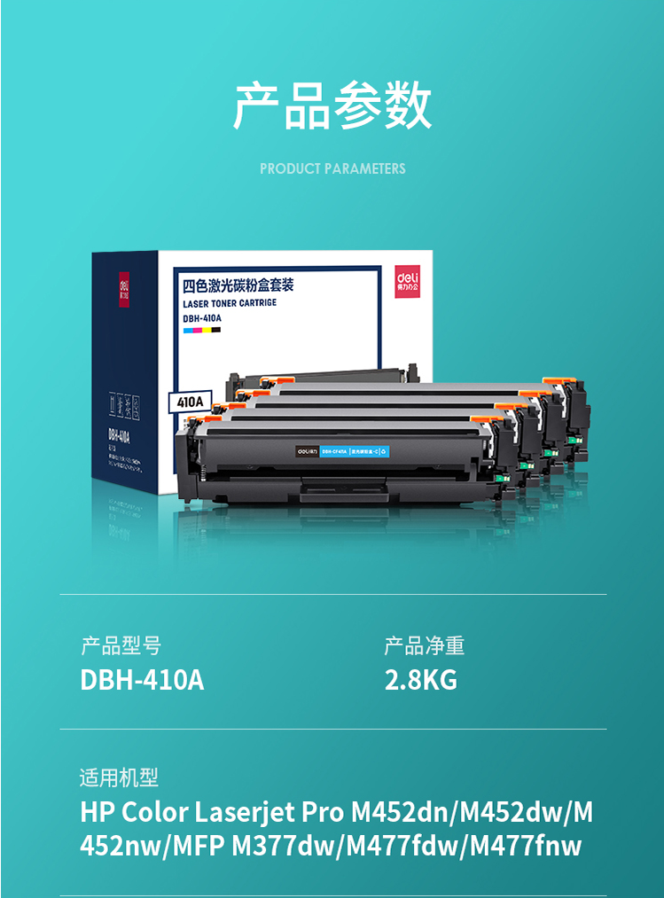 得力(deli) CF410A四色硒鼓套装适用惠普M452DN m377dw M452DW M452NW 477fnw 惠普410a彩色打印机墨盒带芯片