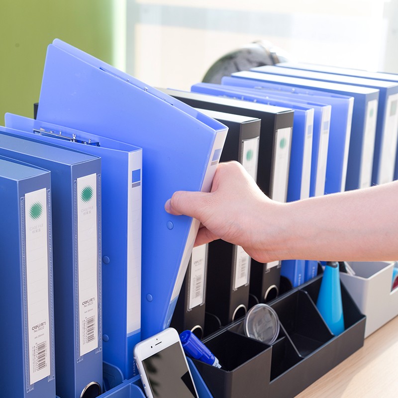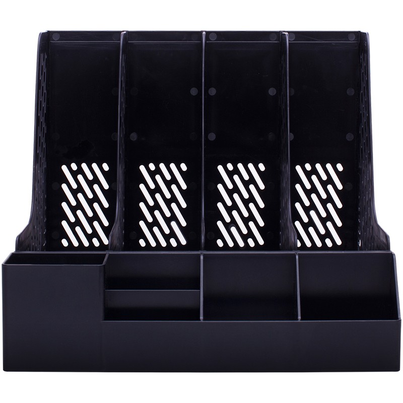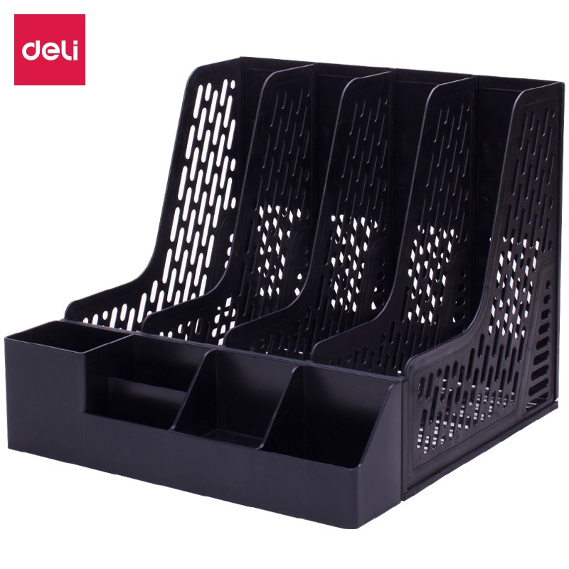 得力78981 文件筐多功能带笔筒四联桌面收纳文件框(黑、灰、蓝颜色随机)