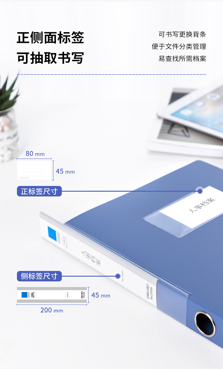 得力 deli 10只35mmA4塑料档案盒 加厚文件盒 党建资料盒 财务凭证收纳盒 办公用品27035