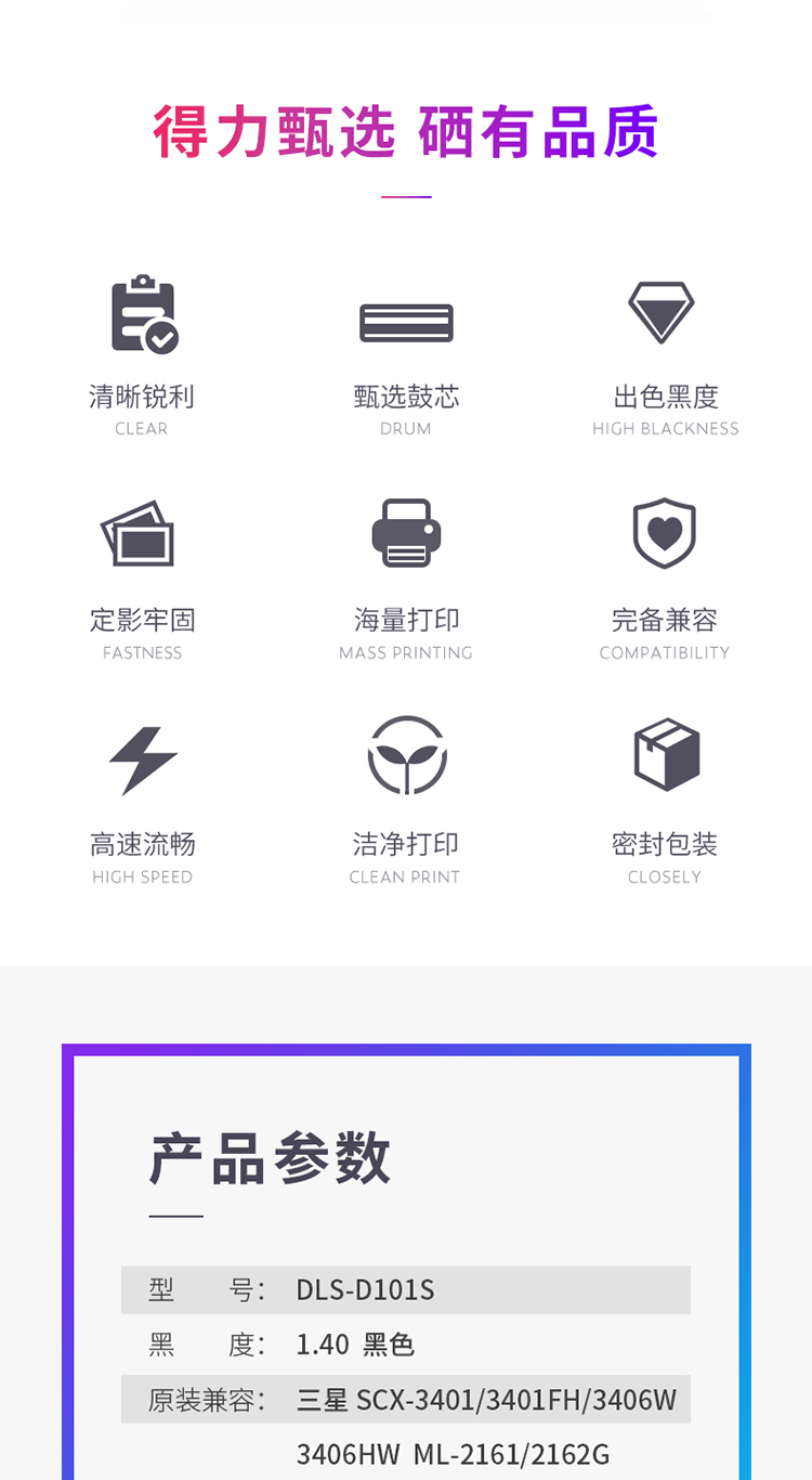 得力 deli DLS-D101S 黑色打印机硒鼓 三星 SCX-3401/3401FH/3406W/3406HW ML-2161/2162G/2166W SF-761/761P