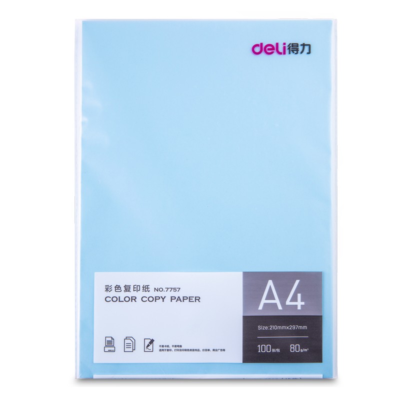 得力 deli 7757 彩色复印纸 A4 80g 100张/包 浅蓝 计价单位:包