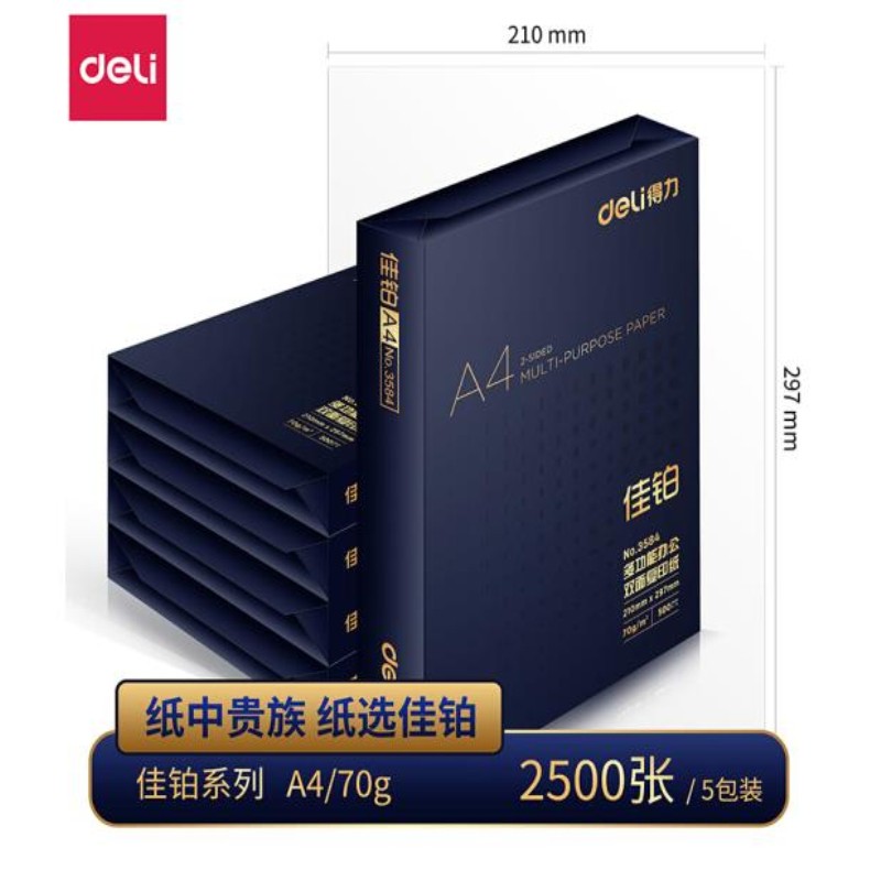 得力 deli 3585 复印纸 佳铂 70g A4 5包/箱 计价单位:包