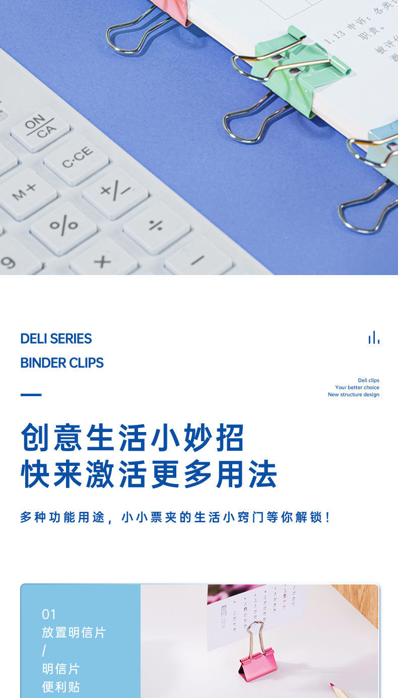得力 deli 24只41mm省力彩色长尾夹票夹 2#金属燕尾夹票据夹子 办公用品 8552S